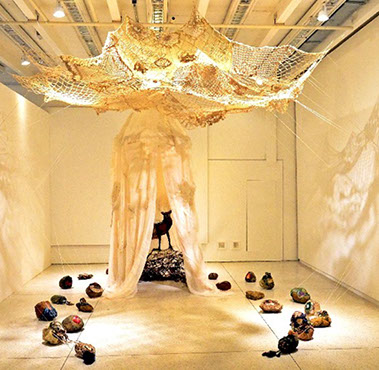 Instalação coletiva de Giovana Casagrande, Claudia Lara e Leila Alberti